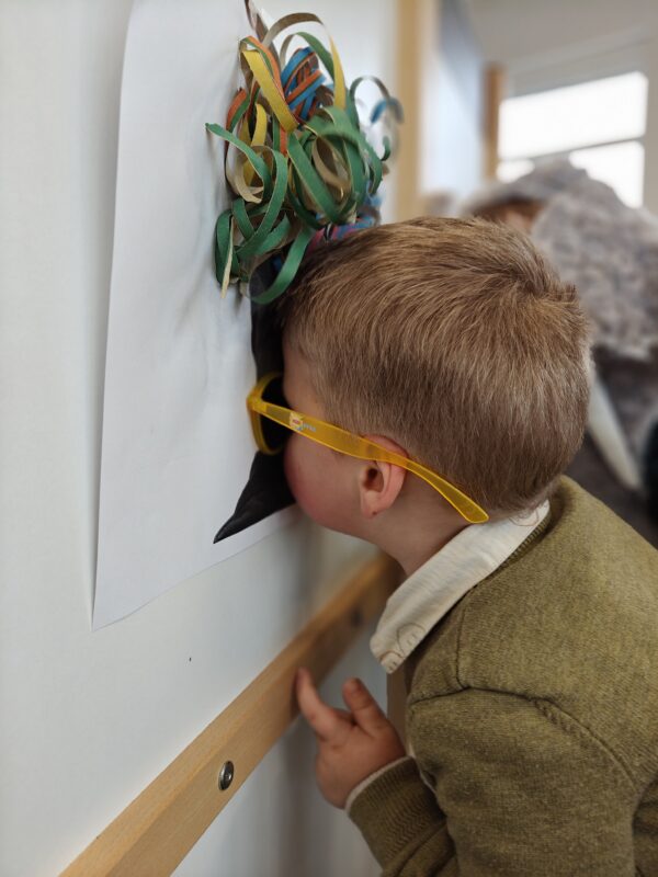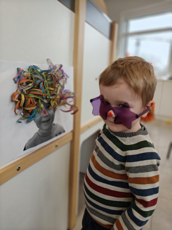 Op stap! Jules had de sleutel van de brievenbus verstopt in zijn broekzak. Maar waar was de brievenbus nu eigenlijk? Wij gingen met z’n allen op zoek. Na veel proberen vonden we eindelijk de juiste brievenbus. En wat zat daar in? Een uitnodiging voor het neuzenfeest op de blauwe dag in de dolfijntjesklas!