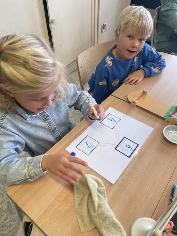 - De schrijfletter ‘l’ schrijven in ons schrijfhuisje en in het Lunaboekje.