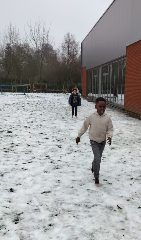 Net zoals in het liedje dat we aanleerden, stapten we met onze voeten in de sneeuw als een echte ijsbeer.
