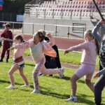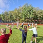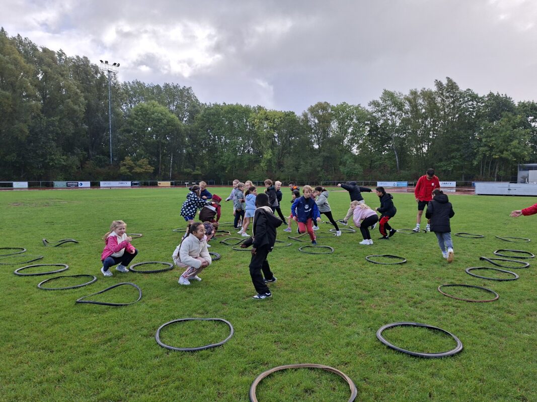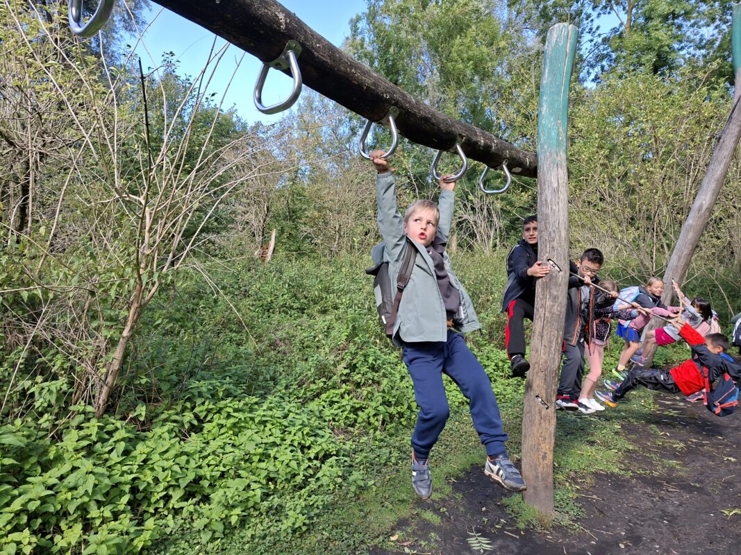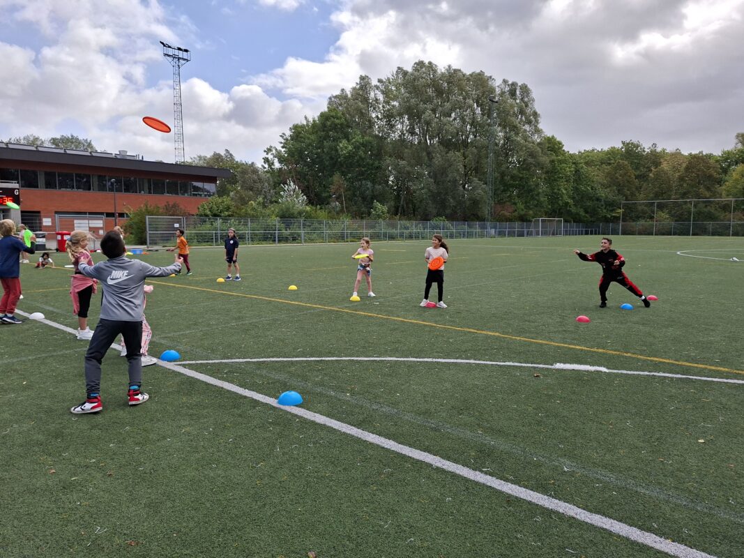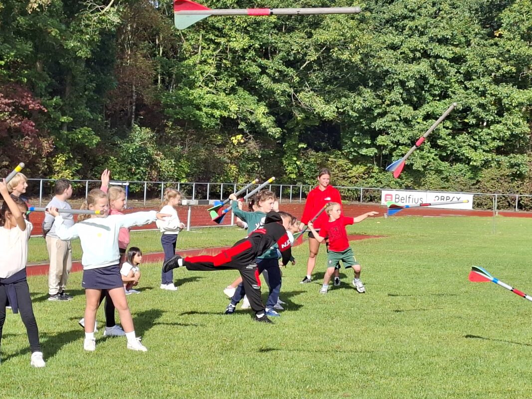 We gingen op sportdag naar de Blaarmeersen. We deden atletiek, frisbee, klimmen/klauteren.